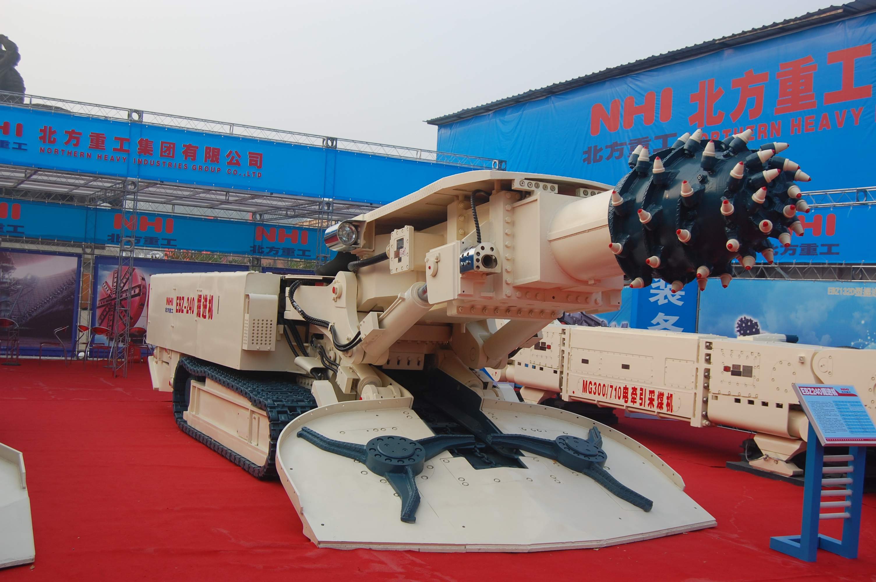我司是國內較早設計生產掘進機的企業之一,多年來為國內各大煤礦生產廠家提供了優良的產品。現我公司掘進機已形成系列化生產,機型為EBZ120、EBZ132、EBZ160A、EBZ160A(矮)、EBZ200、EBZ220、EBZ240、EBZ260、EBZ320、EBH360。其中2012年我公司自主研發的EBH360橫軸式掘進機,其工作性能指標達到(或超過)同規格掘進機的專業水平,控制上達到專業水平。其中橫軸式掘進機在結構設計和制造上都有了新的突破,攻克了在切割結構傳動問題上的難關,而且實現了行走兩種速度的調動,同時在液壓系統上實現了電液兩種控制功能,在電氣系統上實現了遙控控制及仿形切割功能等,其技術水平在國內綜掘設備研發領域占有較高地位。