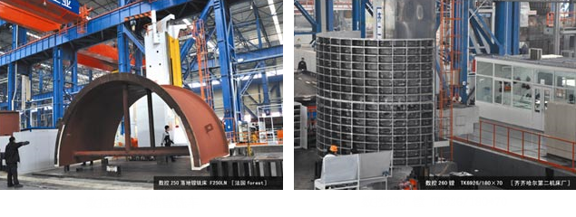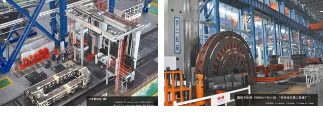 Cold Processing: 8×20m heavy-duty 7-axis(5interlockable)planer type moving CNC milling-turning combination lathe, 6×2-10×20m various kinds of CNC planer milling machine 15 sets, Φ160-Φ260 various kinds of NC boring & milling machine 21 sets, Φ5-Φ20m various kinds of large-scale CNC vertical lathe 16 sets, Φ5-Φ14m gear hobbing machine 6 sets, more than 1m curve-tooth hobbing machine 5 sets, 0.8-1.5m various kinds of gear grinding machine 9 sets, Φ2.5-Φ3.5m various kinds of gear shaping machine 3 sets, Φ800 horizontal gear hobbing machine, Φ800×5m cylindrical grinder,2m NC vertical mill and full-automatic idler production line.